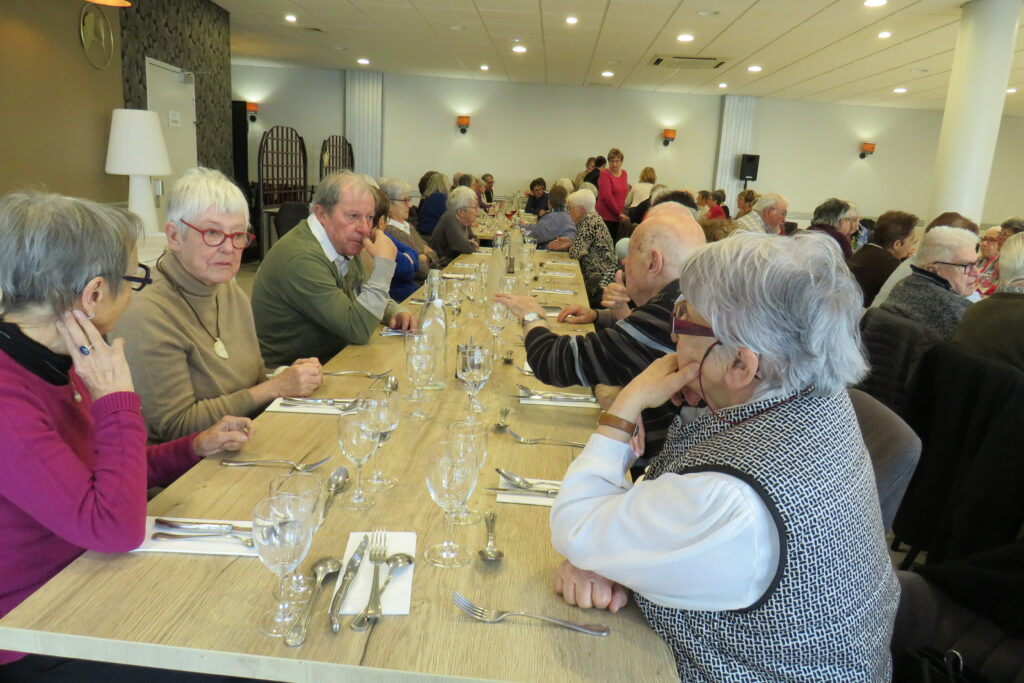 Le repas fut, du café de l’accueil au dessert couronné de café, apprécié et animé, tant par les retrouvailles que par la bonne humeur générale.